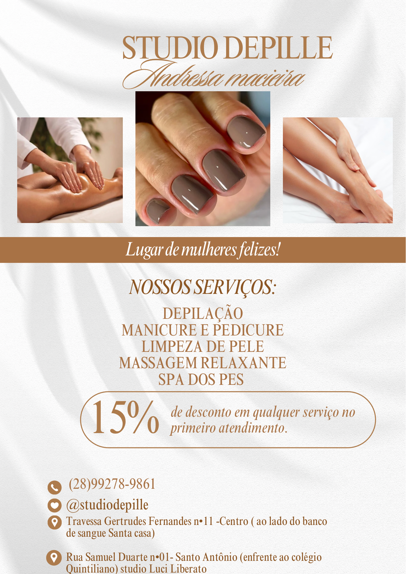 Especialista em Epilação humanizada Unhas impecáveis 2 Atendimento a Domicílio Atend. Especial Gestantes e Idosos